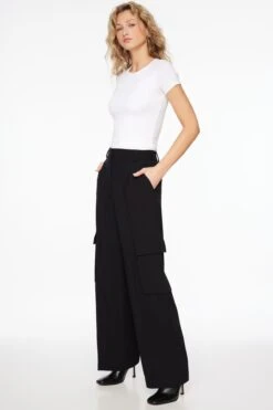Dynamite Gisele Faux Leather Straight Leg Pants In Jet Black