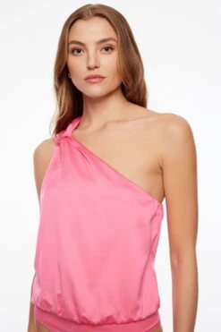 Dynamite Pleated Twisted Crop Blouse In Green & Blush Floral Pink