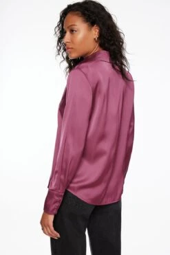 Dynamite Nellie Balloon Sleeve Button Up Shirt In Purple Abstract