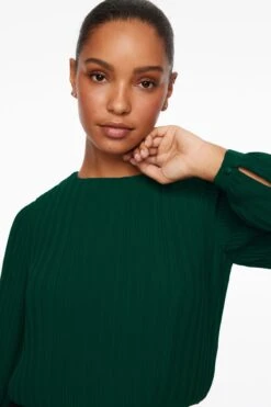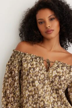 Dynamite Pleated Twisted Crop Blouse In Green & Blush Floral Pink