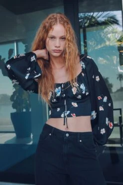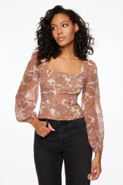 Dynamite Square Neck Blouse With Bubble Sleeves In Small Multi Floral
