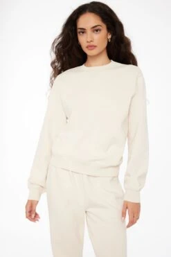 Dynamite Ballet Crew Neck Sweatshirt In Polished Pearl Beige
