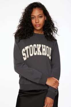 Dynamite Classic Appliqué Crew Neck Sweatshirt In Lead Gray & Stockholm Art