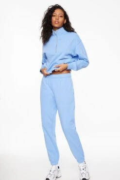 Dynamite French Terry Quarter Zip Sweatshirt In Cornflower Blue