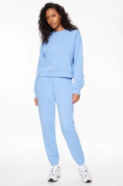 Dynamite French Terry Crew Neck Sweatshirt In Cornflower Blue