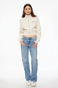 Dynamite Mock Neck Zip Embroidered Sweatshirt In Polished Pearl & Club 1984 Art