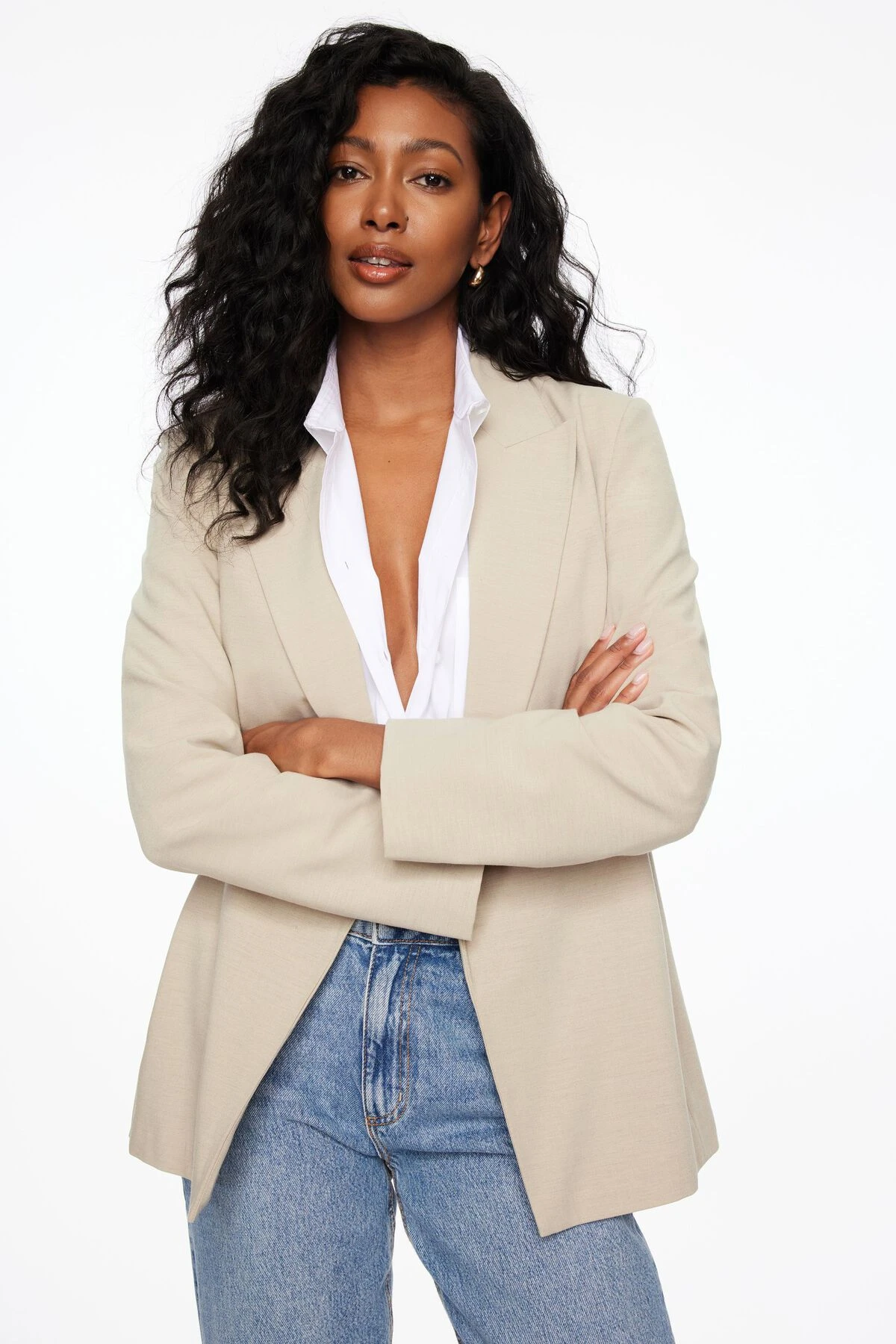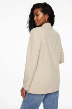 Dynamite Athena Relaxed Open Blazer In Mocha Cream Beige
