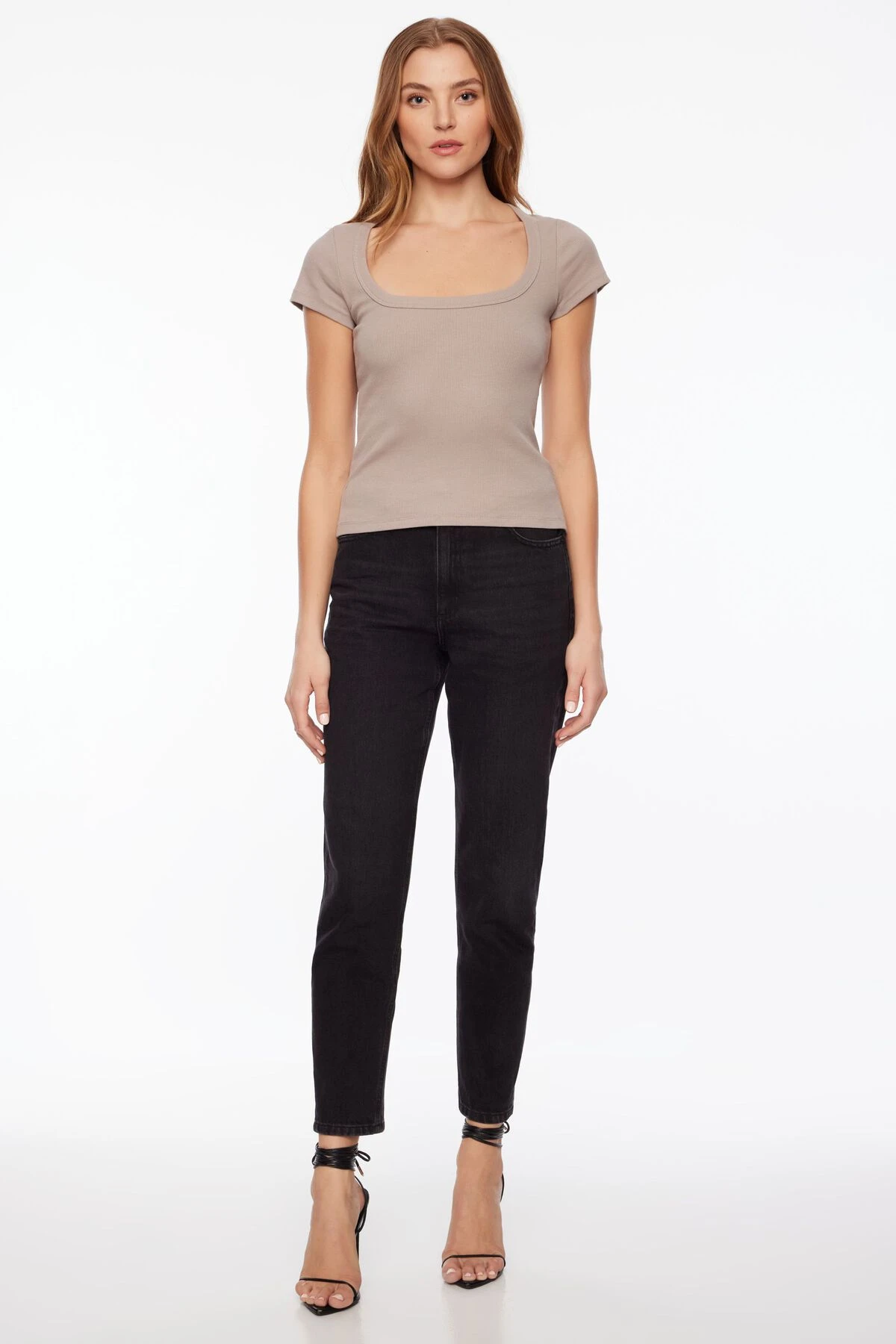 Dynamite Aurelia Scoop Neck Tee In Cinder Beige