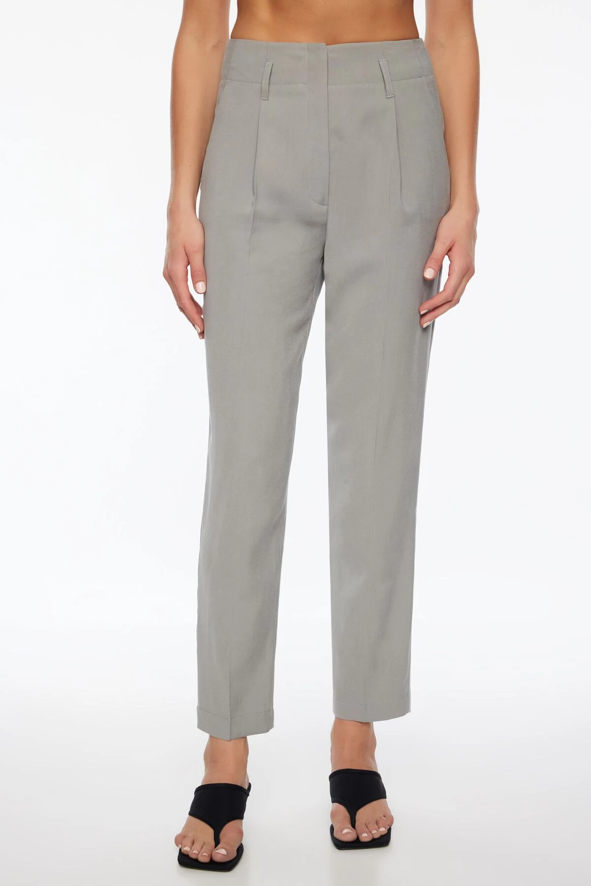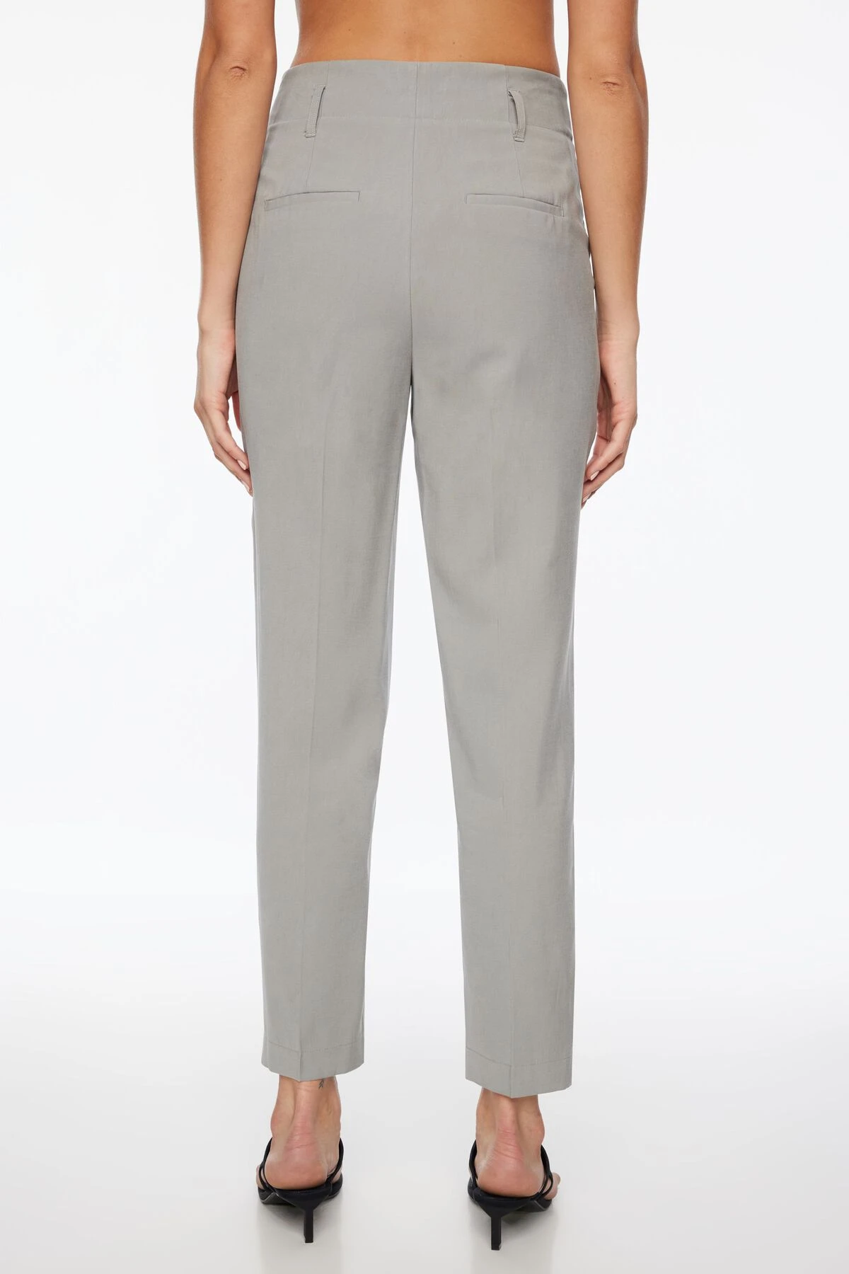 This is a straight-leg tailored trouser made with an adjustable belt.