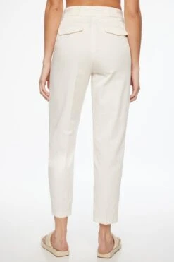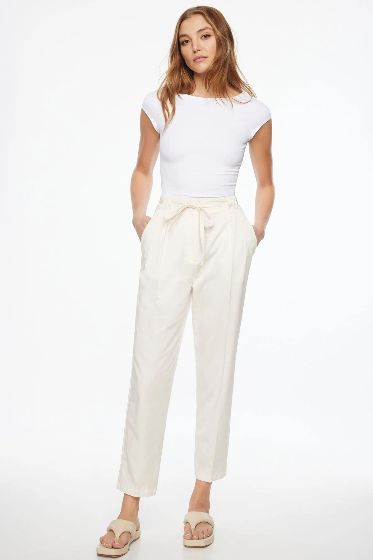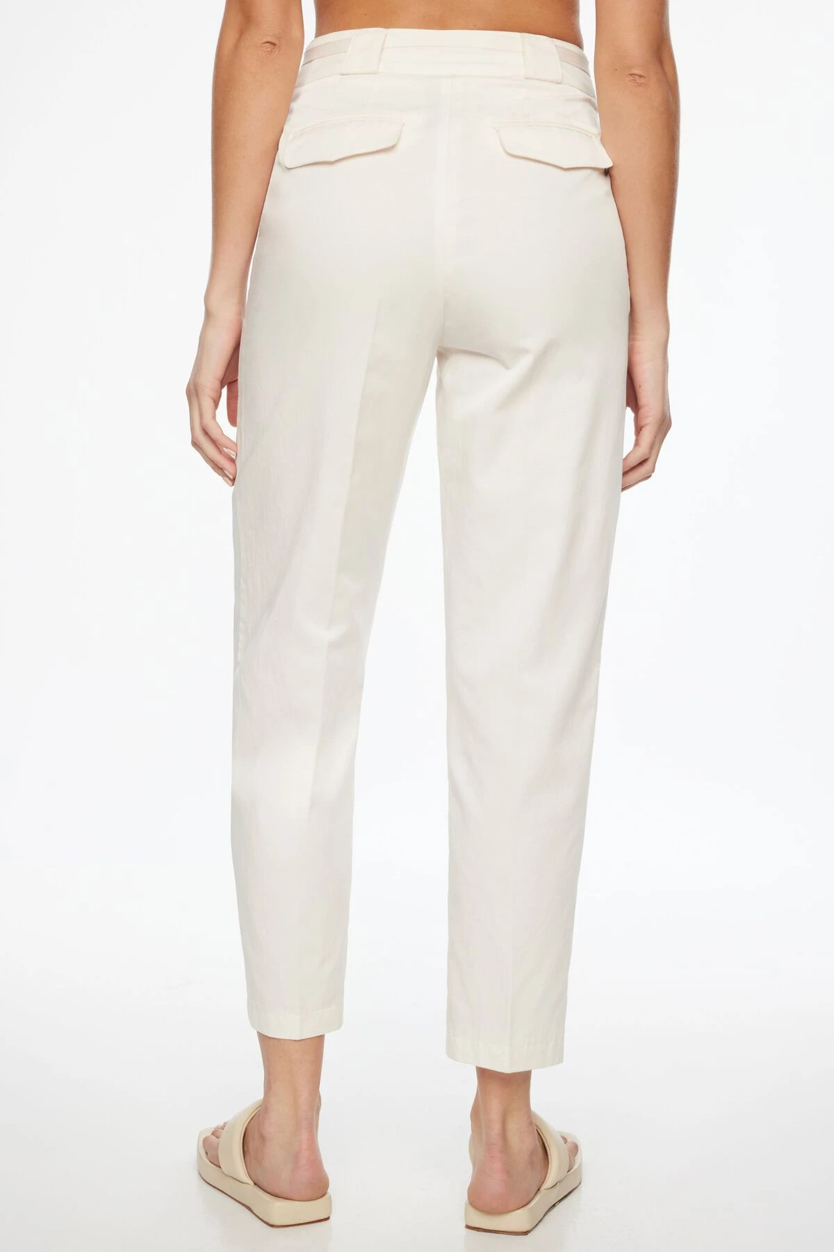 This is a straight-leg tailored trouser made with an adjustable belt.
