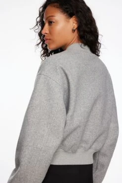This is a bomber jacket – Designed with a double knit fabric.
