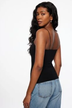 This is a square neck jersey cami – Designed to be fitted with a stretch to accentuate your form.