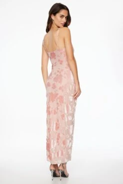 Dress to the nine’s with this cowl neck midi dress – Designed with a floral flocked patten and stretch fabric for an effortless look.