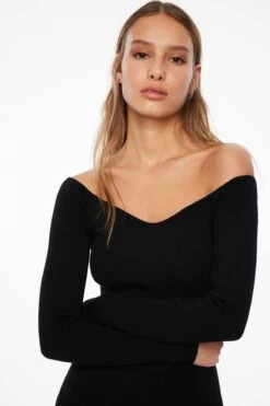 This is a rib knit maxi dress – Designed to be fitted to fabric contour your shape effortlessly.