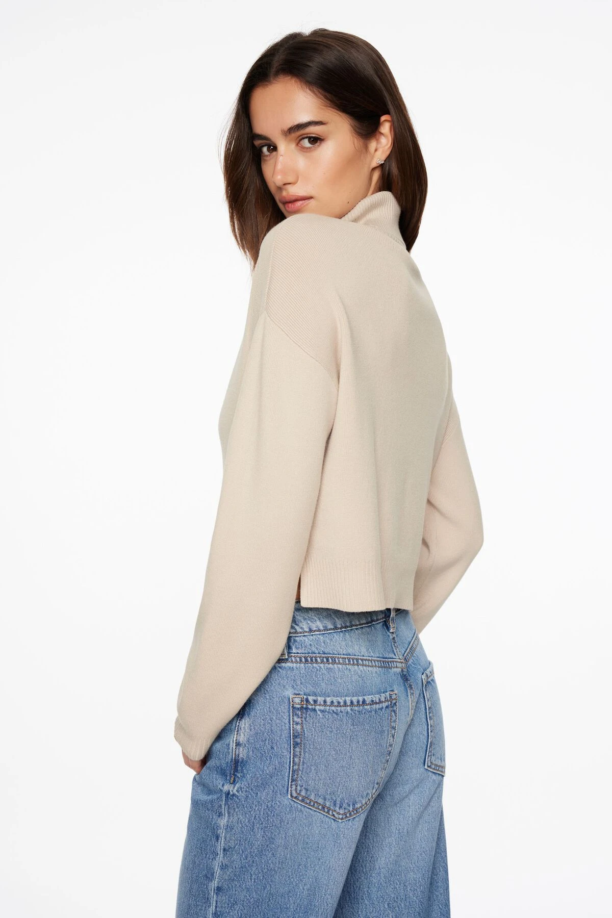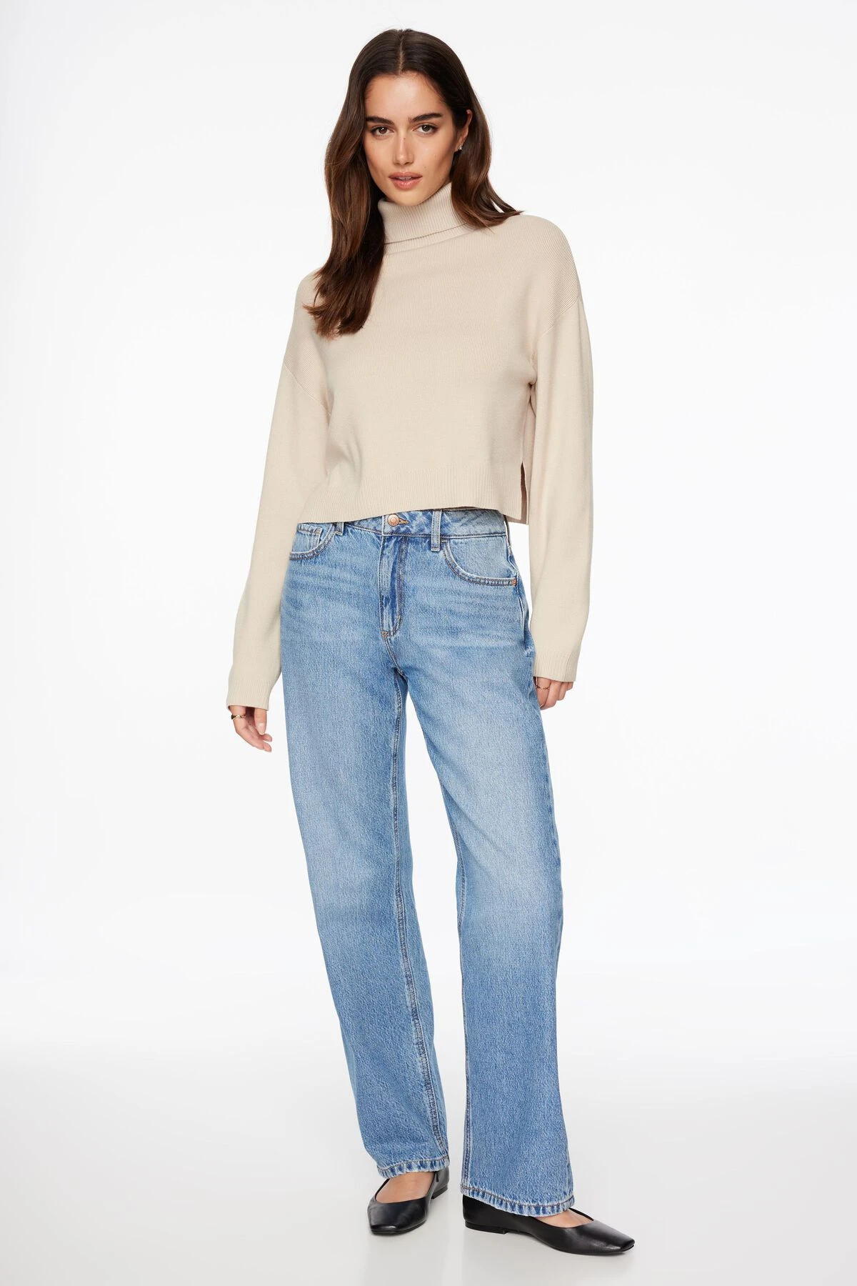 Snuggle into this rib knit turtleneck sweater – Designed with a relaxed fit and cropped hem.