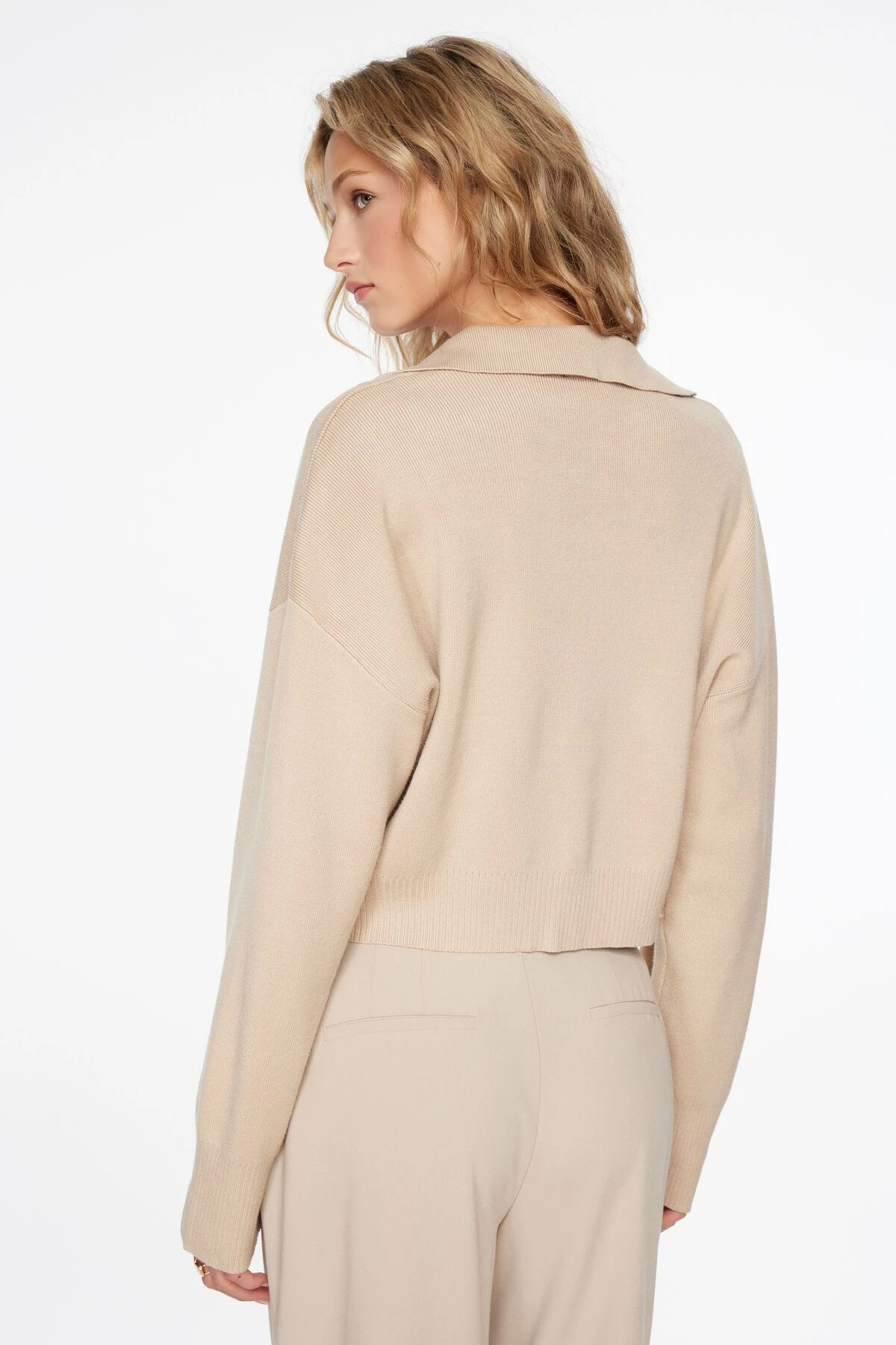 Dynamite Cropped Polo Sweater In New Tan Beige