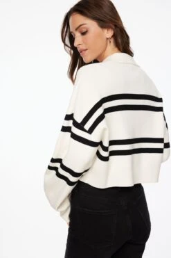 Be the first to review “Dynamite Cropped Polo Sweater In Snow White & Black Stripes” Cancel reply