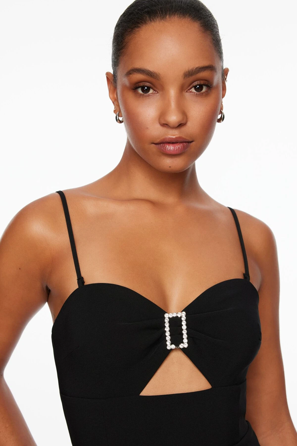 Dress to the nines with strapless midi dress – Designed with a rhinestone buckle appliqué and form-fitting to accentuate your figure.