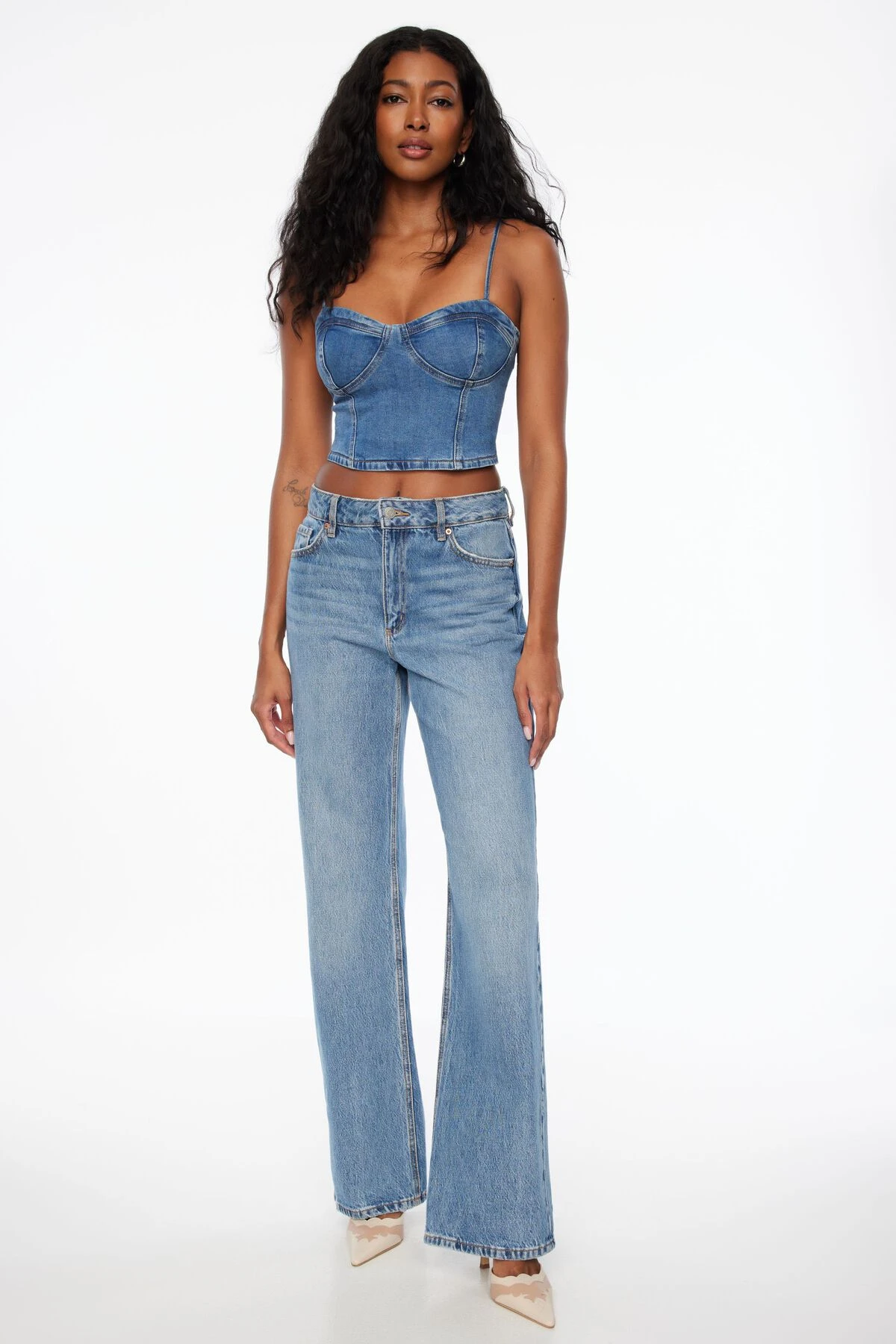 Delve into denim with this denim bustier top – Designed to be fitted with a stretch to accentuate your form.