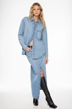 This is a button up shirt – Designed with a lightweight denim fabric.