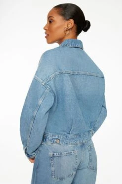 This is a denim jacket – with a relaxed slouchy fit – Designed with an organic cotton blend.