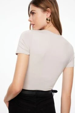 Dynamite Drea Crew Neck Jersey Tee In Ashes Of Roses Beige