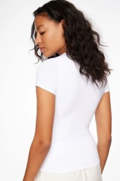 This is a basic crew neck tee – Designed with an ultra soft double lined stretch fabric.