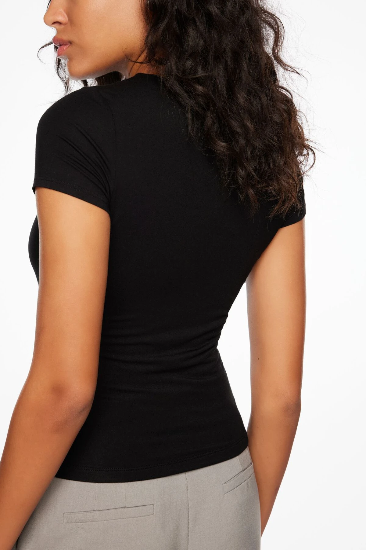 This is a basic crew neck tee – Designed with an ultra soft double lined stretch fabric.