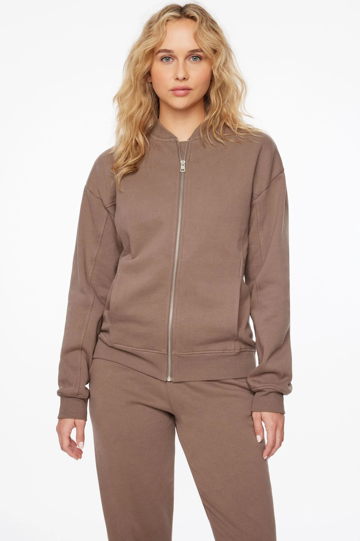 Constructed with a relaxed fit snuggle into this fleece bomber jacket.