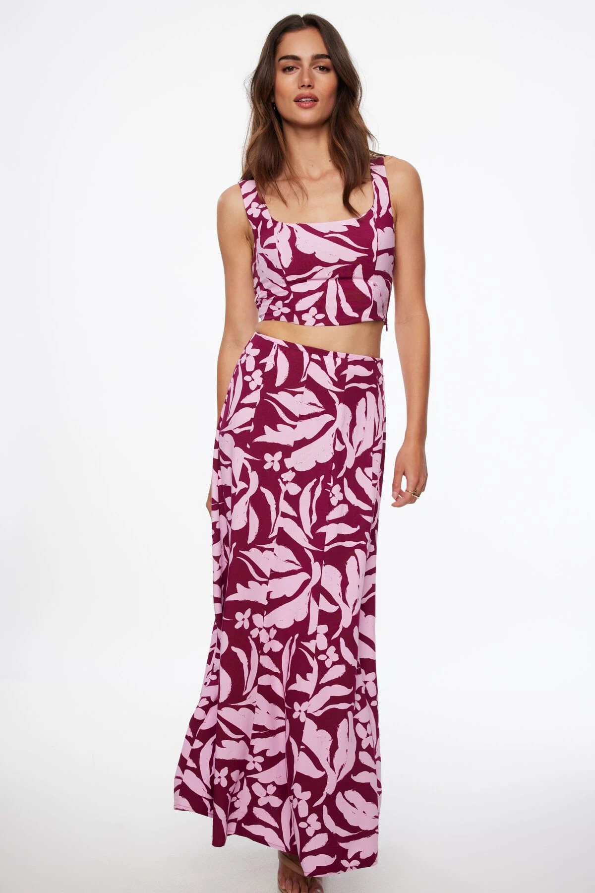 This is a slub woven tank top – Designed to be fitted with a floral print pattern. Pair it with our linen maxi skirt 10008603777V for the ultimate duo.