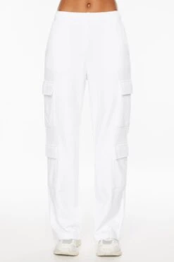 This is a cozy fleece wide-leg jogger with made with cargo pockets.