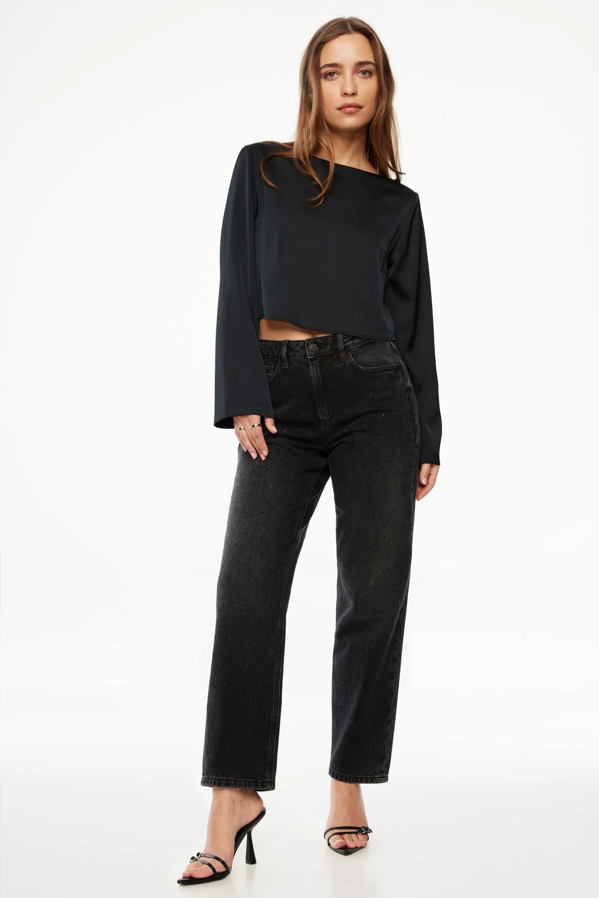 Dynamite Long Sleeve Shirt With Big Cuffs In Diagonal Stripe