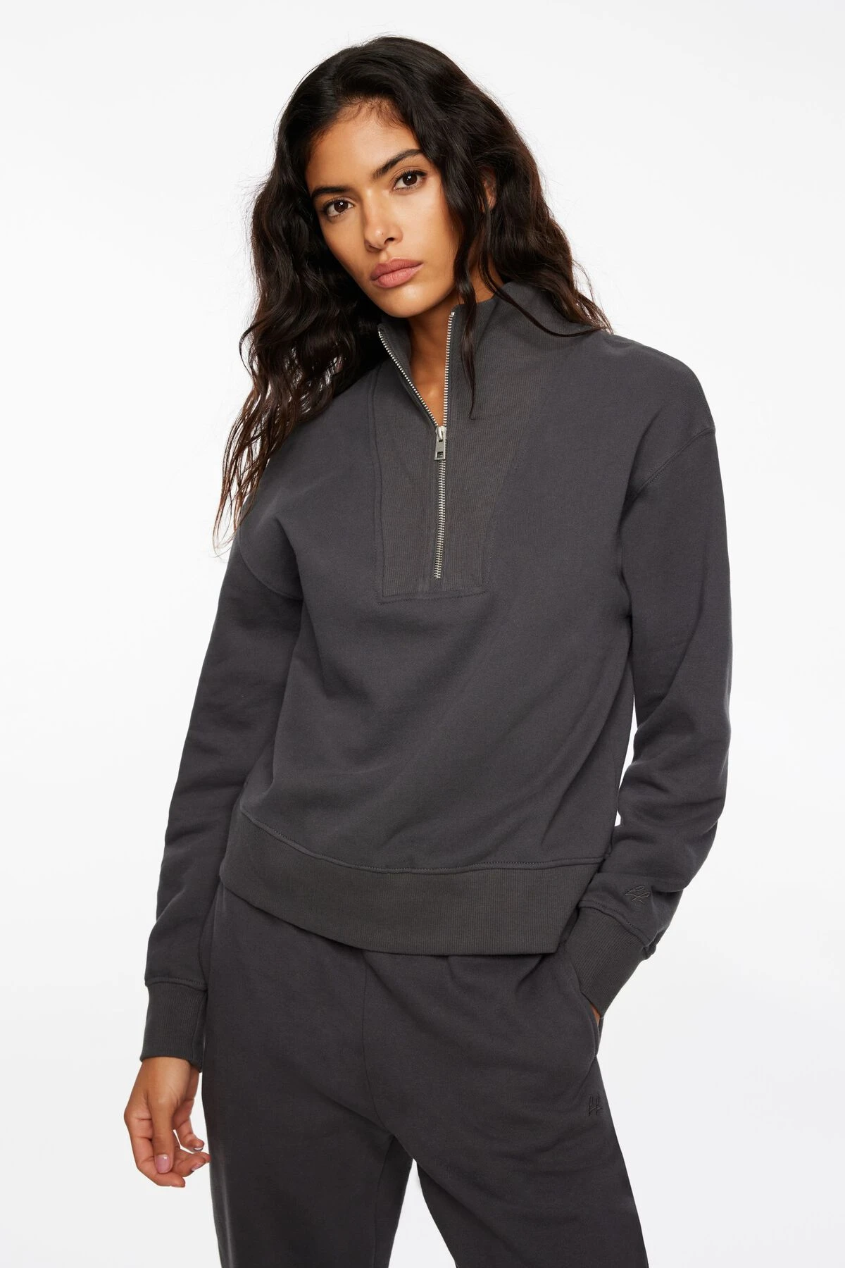 This is a mock neck sweatshirt- Designed with a soft fleece fabric.