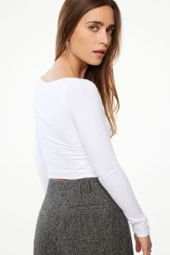 Soft to the touch this long sleeve boatneck jersey crop top is the essential you need.