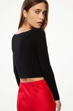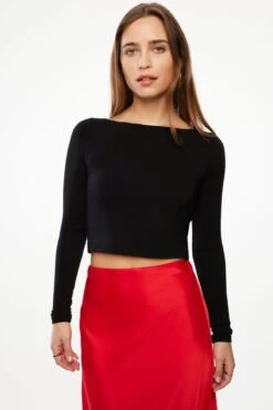 Soft to the touch this long sleeve boatneck jersey crop top is the essential you need.