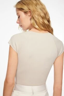 Dynamite Heather Short Sleeve Seamless Bodysuit In Rainy Day Beige