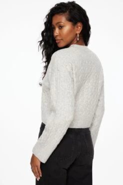 Dynamite Heavenlyarn™ Cable Knit Sweater In Medium Grey Melange