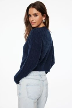 Dynamite Heavenlyarn™ Cable Knit Sweater In Navy Blazer