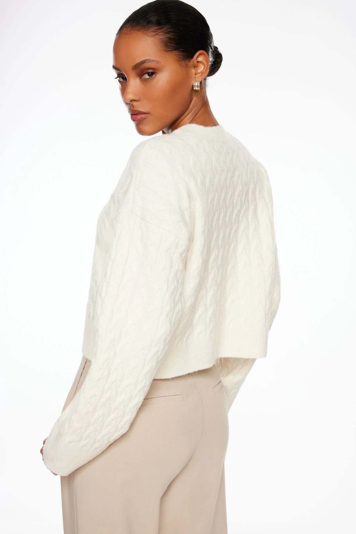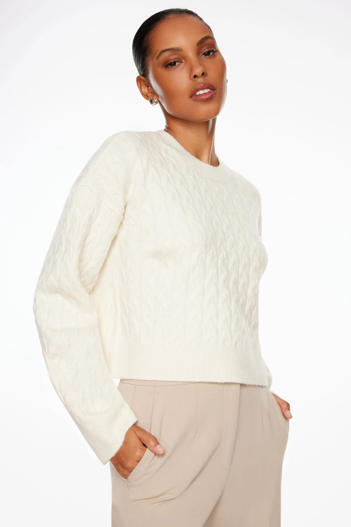 Dynamite Heavenlyarn™ Cable Knit Sweater In Sea Salt Beige