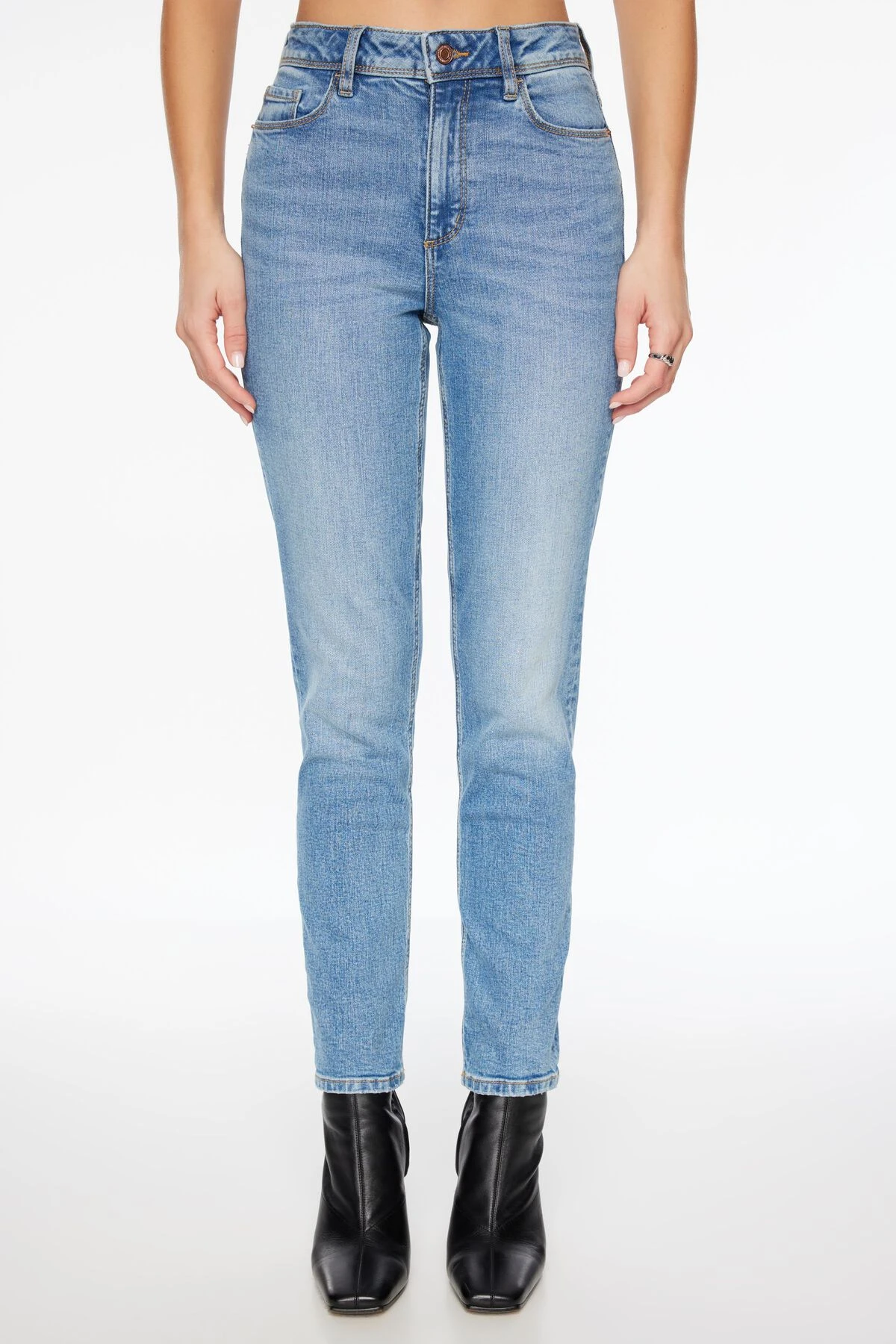 Meet Inez, our high-rise slim straight-leg jeans. Constructed with a slight stretch, fitted to form, and details of fading and whiskering throughout.