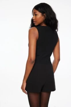 Elevate any look with this square neck twill vest. Designed to be fitted with a stretch to accentuate your form.