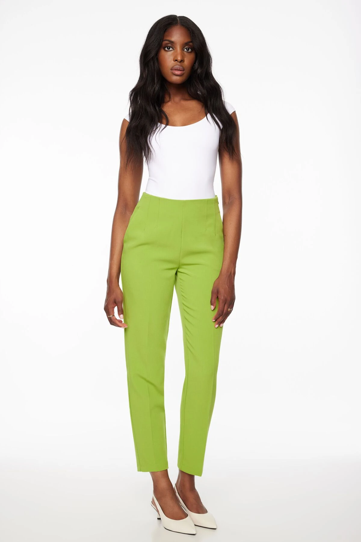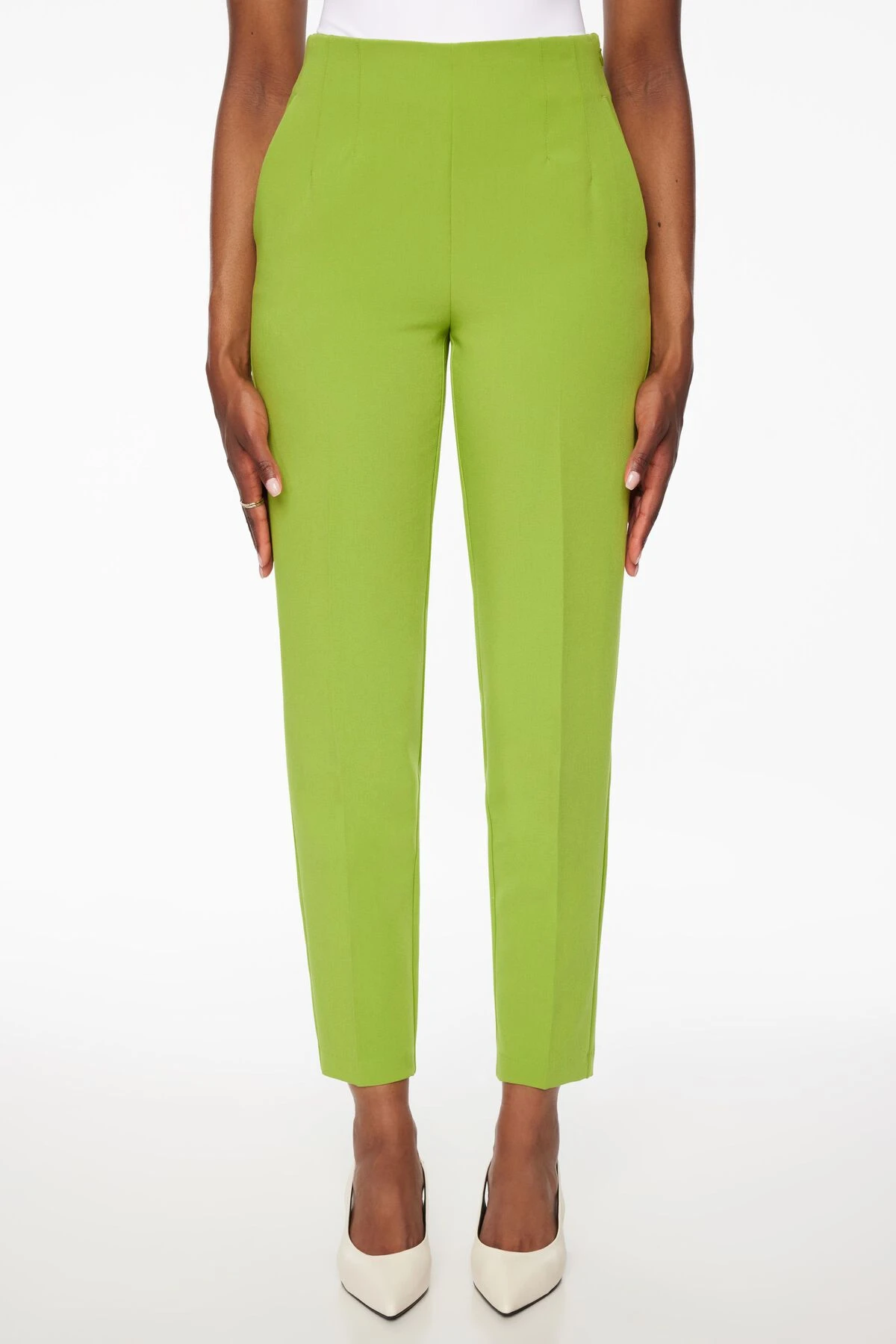 Dynamite Kendall Side Zip Slim Pants In Peridot Green