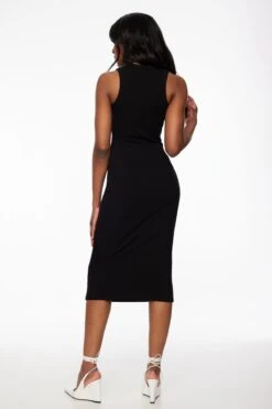 This is a knit seamless midi dress made to shape your body. The double-layered structured fabric ensures an effortless silhouette and sculpts your form.