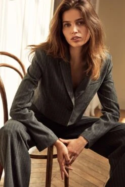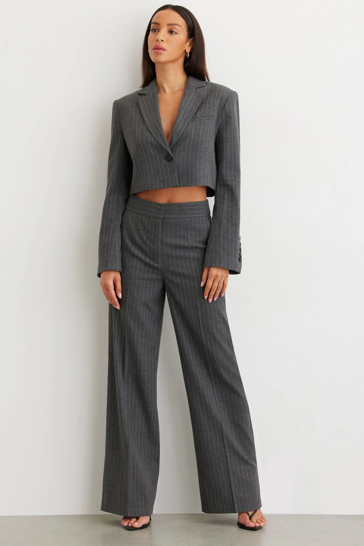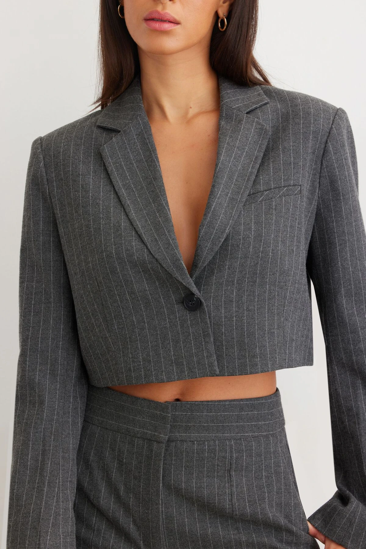 Trendy cropped blazer that pairs perfectly with any high-waisted bottom.