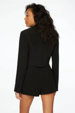 Trendy cropped blazer that pairs perfectly with any high-waisted bottom.
