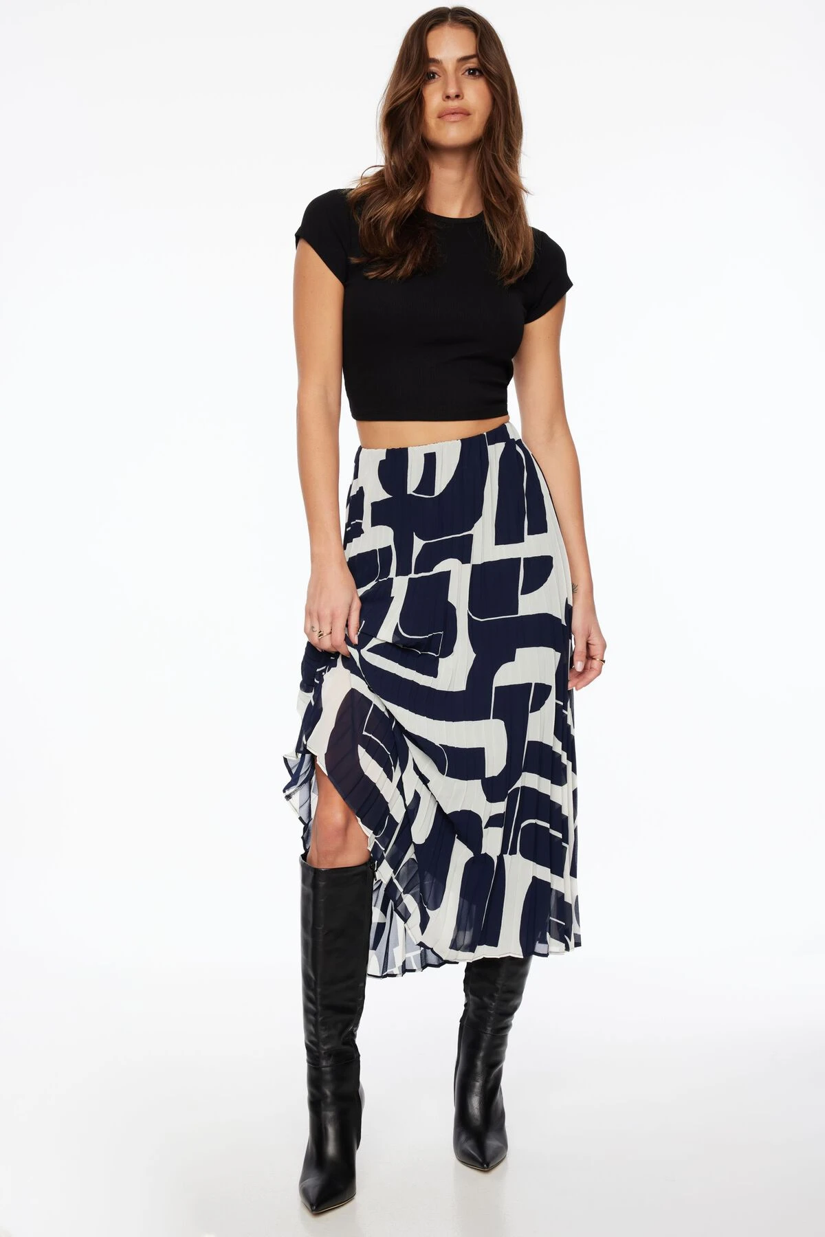 Meet Laure – A pleated chiffon maxi skirt – Designed with an A-line fit for an effortless look.