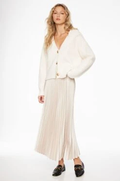 Meet Laure – A pleated maxi skirt designed with a lustrous satin fabric.