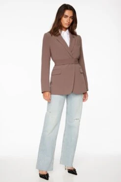 Let me introduce you to Leia – A tailored blazer with an adjustable belt to create a cinched waist look.