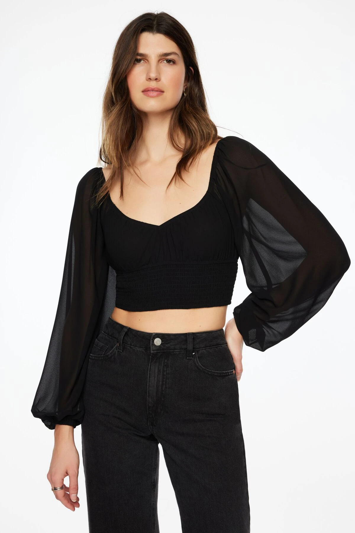 Meet Lilie- A stretchy smocked top with bubble sleeves and a v-neckline.