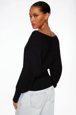 Dynamite Long Sleeve Boat Neck Sweater In Jet Black - Image 4